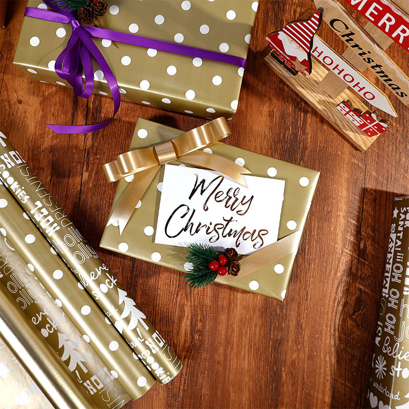 Wholesale 80g Christmas Metallic Paper 43*300cm Gift Luxury Custom Packaging Wrapping Paper Roll
