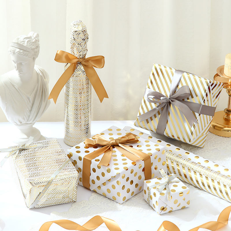 Wholesale 80g Coated Disposable Birthday Hot Stamping Art Paper Tissue 43*300cm Gift Luxury Custom Packaging Wrapping Paper Roll