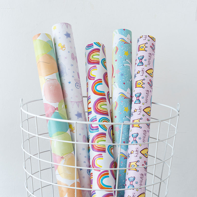 Vente en gros 80g de papier d'art pour la Journée internationale des enfants rouleau de papier d'emballage 43*300cm pour cadeau de luxe emballage personnalisé