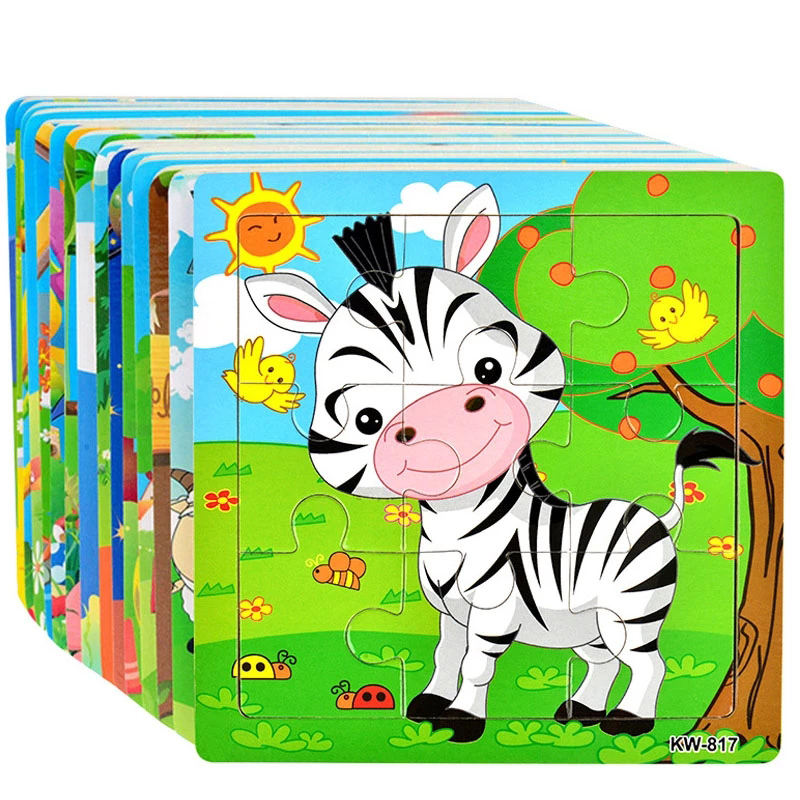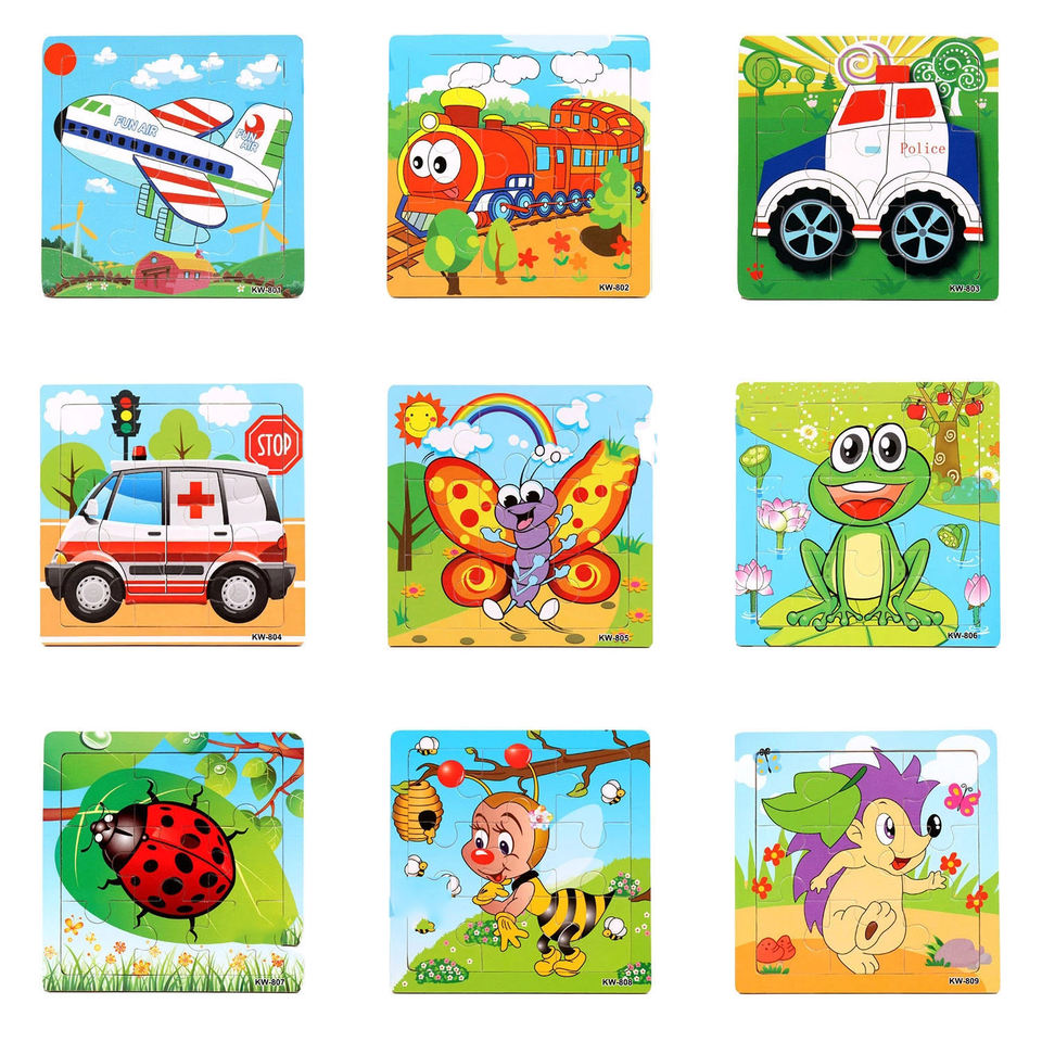 En gros 9 PCS Préscolaire Intelligence Dessin Animé Carton Peinture Personnalisé 3D En Bois Puzzle Animal Jouet Éducatif