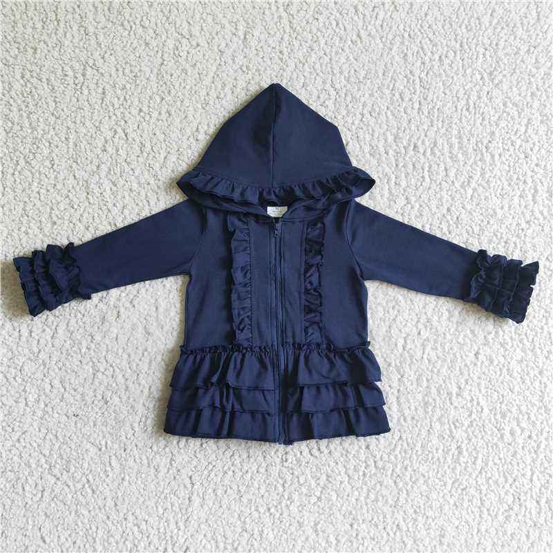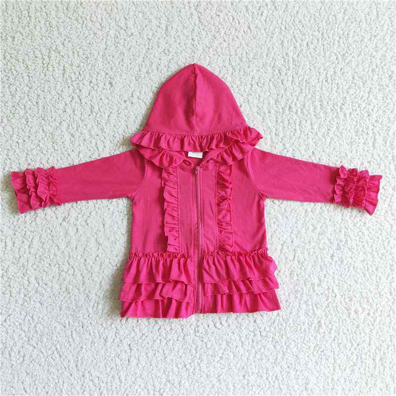 Vente en gros de 9 sweats à capuche à manches longues à volants pour filles, en tissu uni avec fermeture éclair