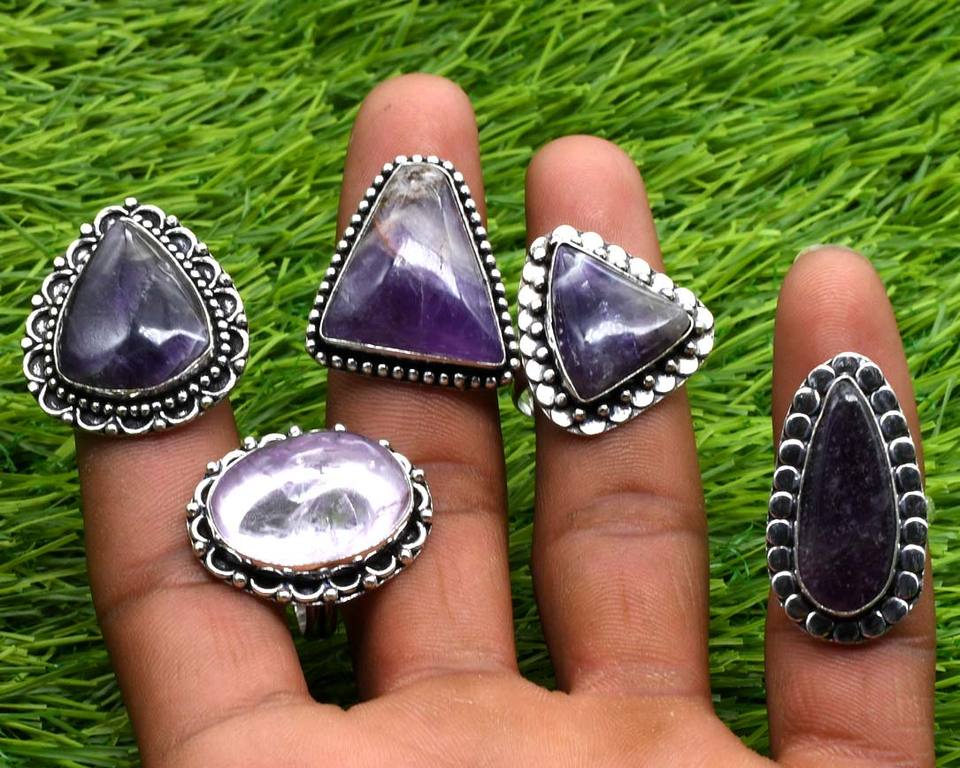 Vente en gros d'anneaux en argent sterling 925, pierres précieuses d'améthyste originales, taille ovale, sertissage à bélière, pierres précieuses multiples, anniversaire chrétien