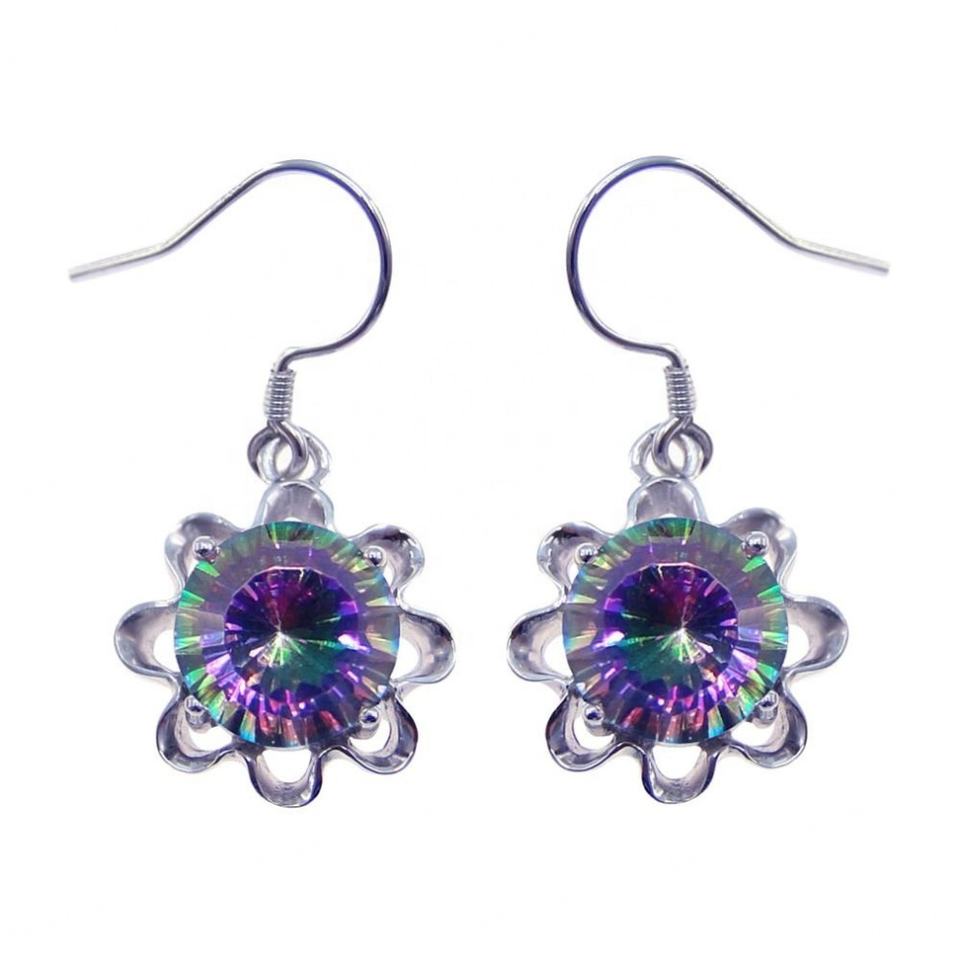 Boucles d'oreilles pendantes en argent sterling 925 en forme de fleur avec topaze mystique, vente en gros