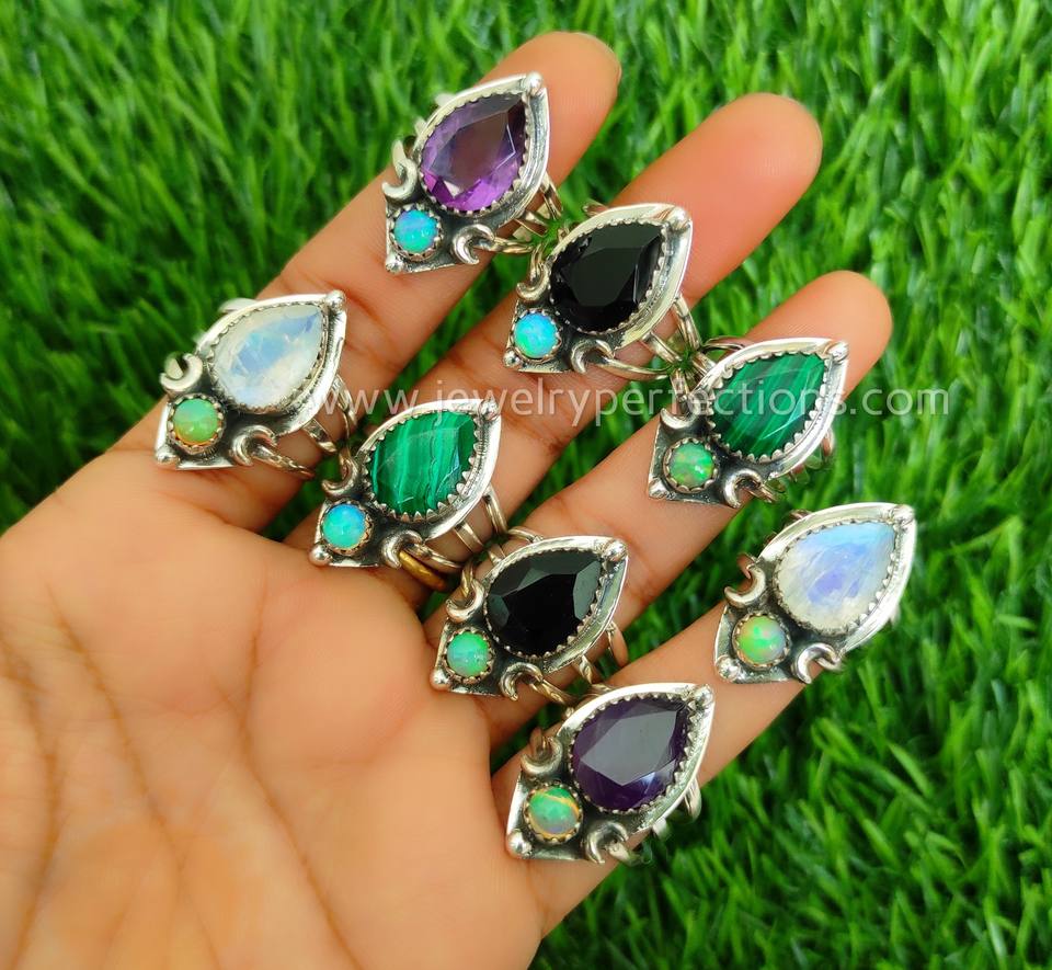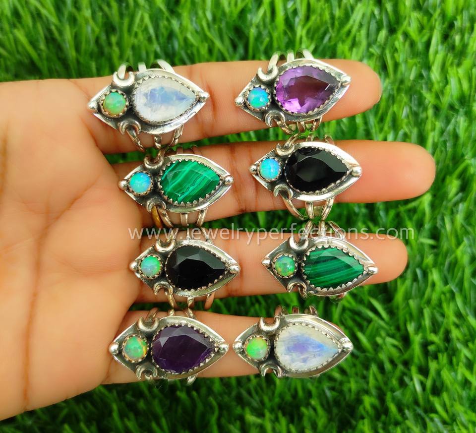 Product name:925 Sterling Silver Mix Gemstones with Ethiopian Opal Rings