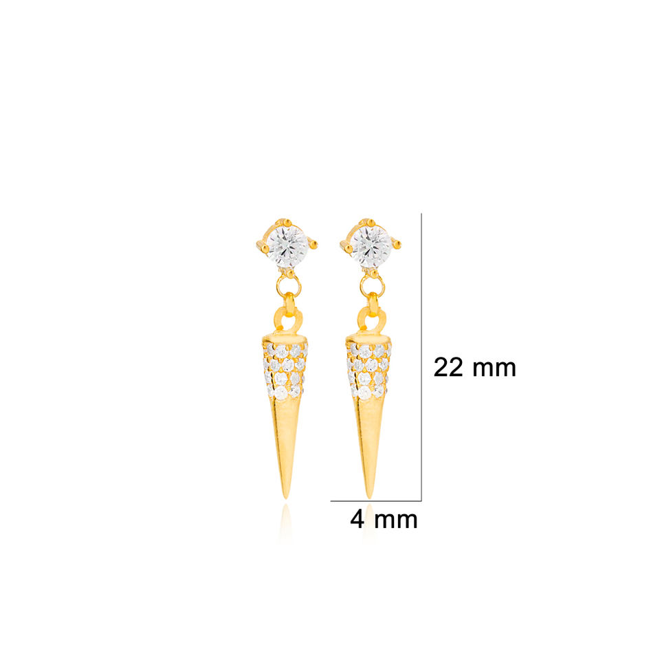 Vente en gros de boucles d'oreilles en argent sterling 925 Design de flèche en pierre de zircon minimaliste faites à la main en Turquie plaqué or bijoux à la mode