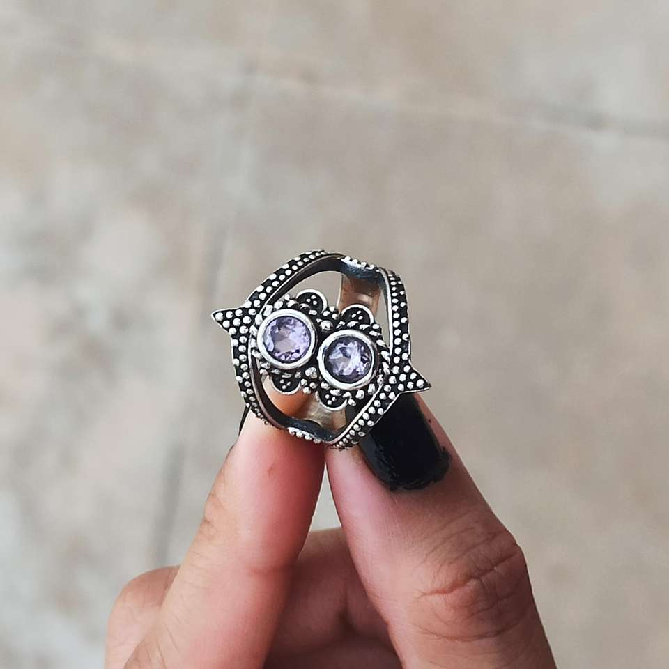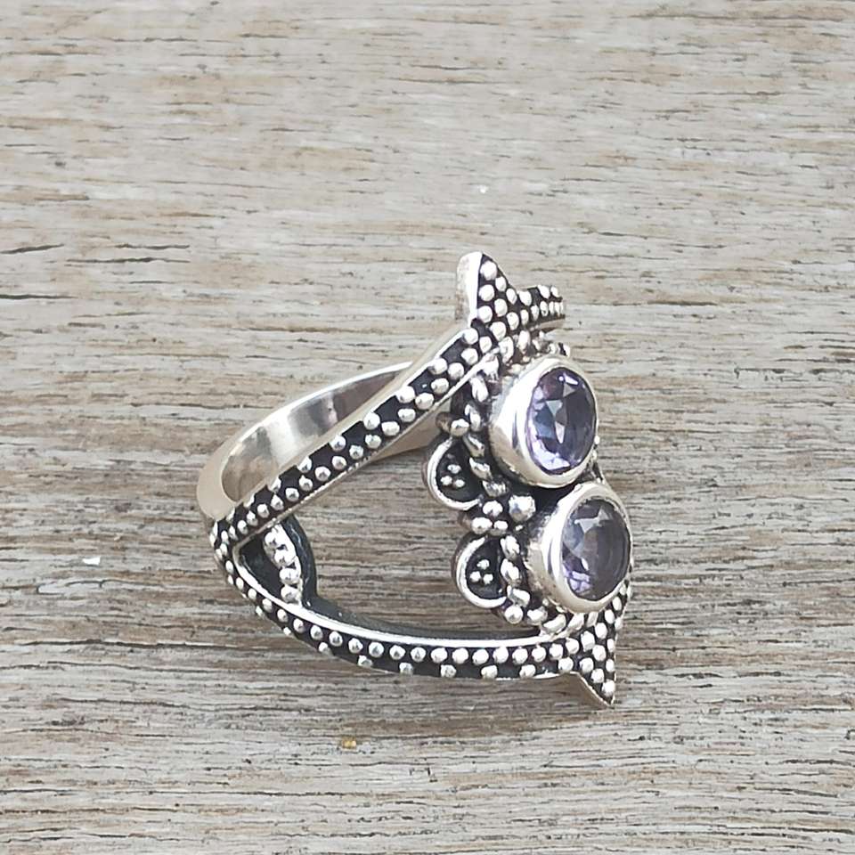 Vente en gros 925 bague en argent sterling deux pierres améthyste naturelle Moissanite/diamant bijoux en pierres précieuses mariages fête prix d'usine