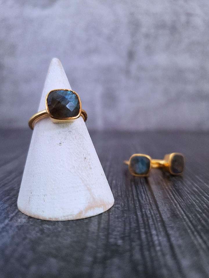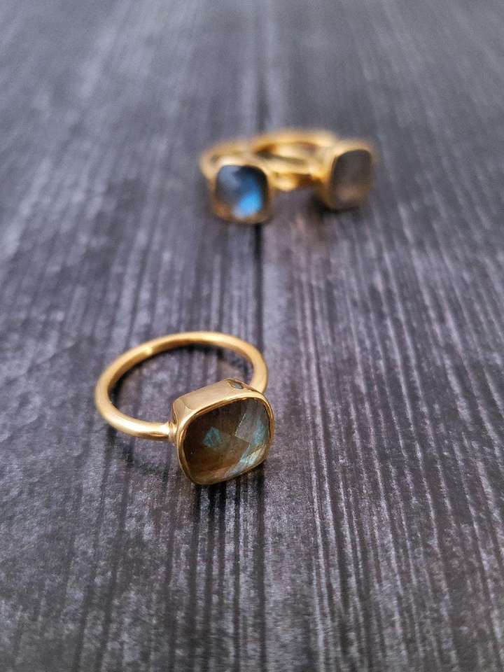 Product name:925 Sterling Silver 22k Gold Plated Faceted Labradorite Ring