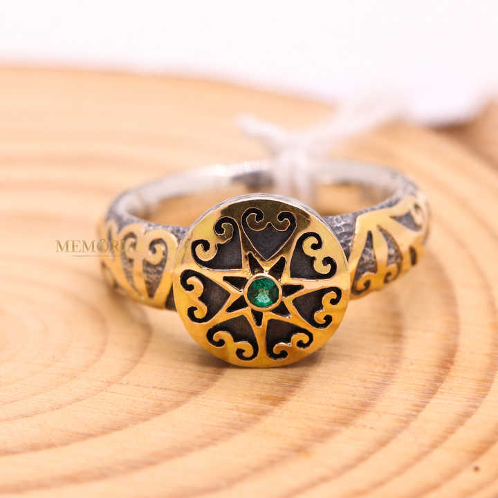 Product Name:925 Sterling Silver Emerald 18k Yellow Gold Ring