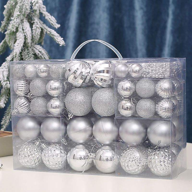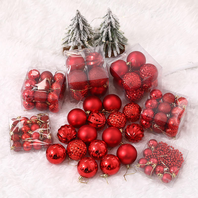 1pc/set in 1 opp bag, then package in 1 carton Wholesale 93pcs Glitter Frosted Plastic Hanging Christmas Ball Festival Decorations Pendant Christmas Ornaments For Home Decor