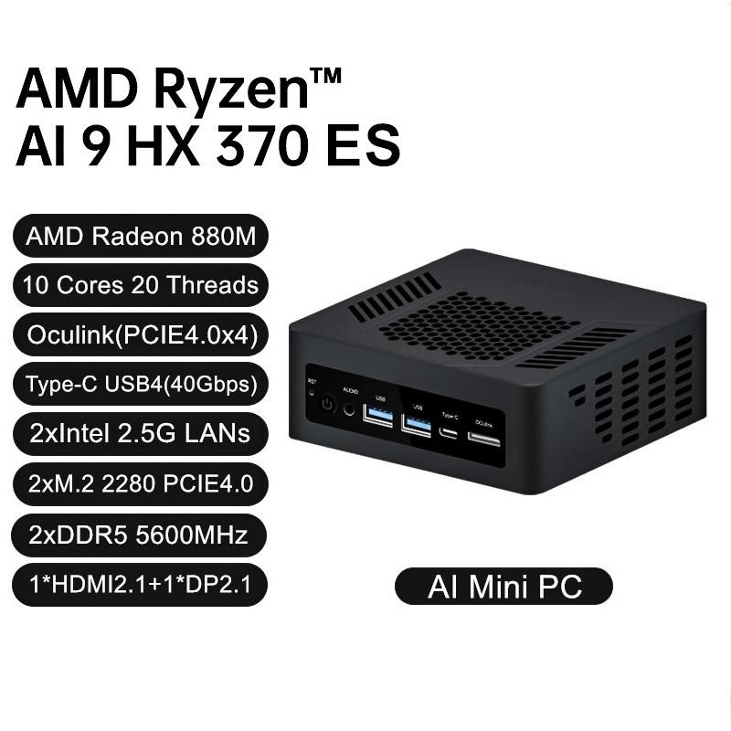 Mini ordinateur de jeu AMD Gamer AI 9 HX 370 ES AI 7 H 350 ES OCuLink Desktop USB4 2x2.5G LAN 2xPCIe Mini PC de jeu WiFi6E