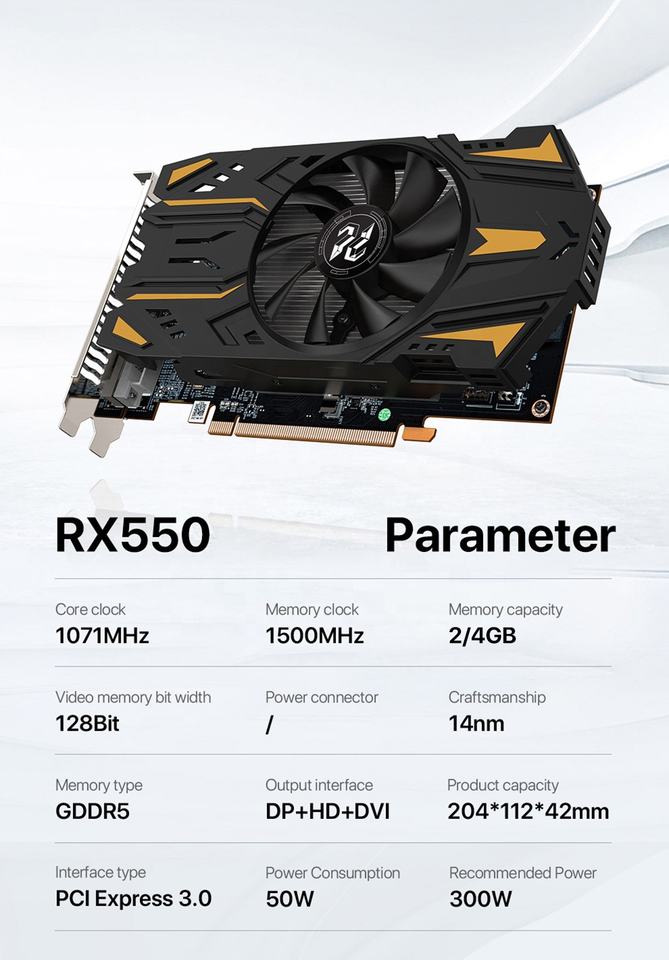 Carte graphique AMD Radeon RX 550 4 Go pour PC, carte graphique GPU RX550 GDDR5 DP HD DVI PCI Express 3.0 128 bits, vente en gros