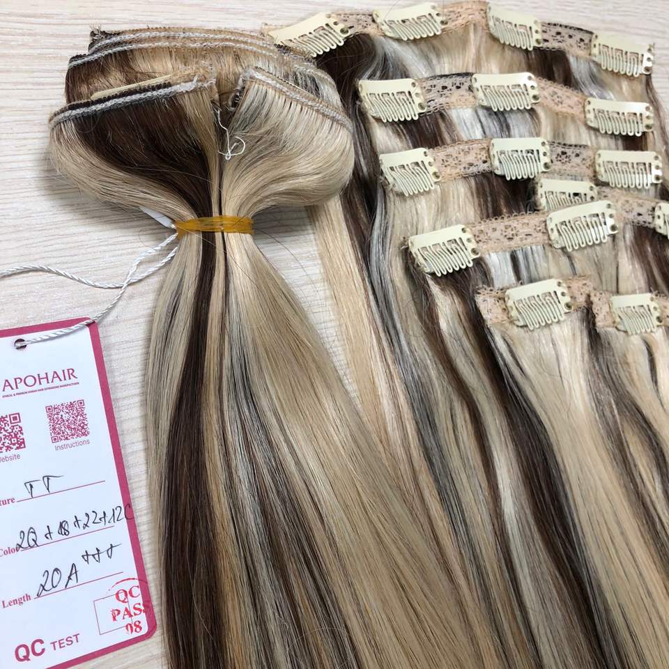 Vente en gros APOHAIR Virgin Remy Extensions de cheveux vietnamiens Piano Couleur Cheveux raides Clip-In Double Drawn A ++ 8 "-30" 2Q + 18 + 22 + 12C