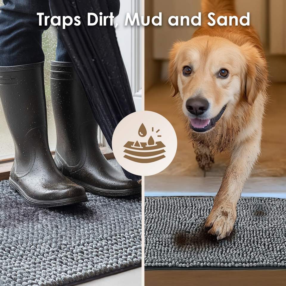 Vente en gros de paillasson absorbant pour chien, paillasson avant, entrée extérieure, séchage rapide, chenille, lit de caisse lavable pour chien, tapis antidérapant pour animaux de compagnie