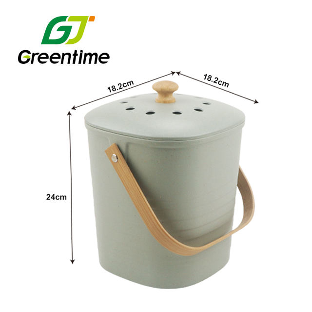 Description:Fibre de bambou bac à compost avec poignée en bambou