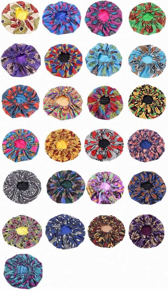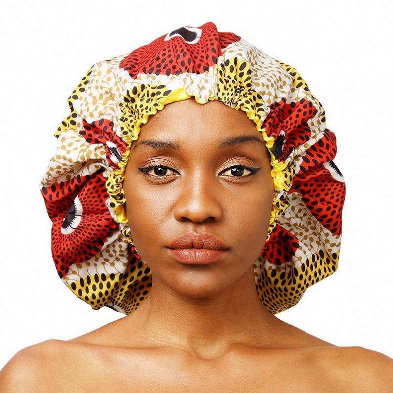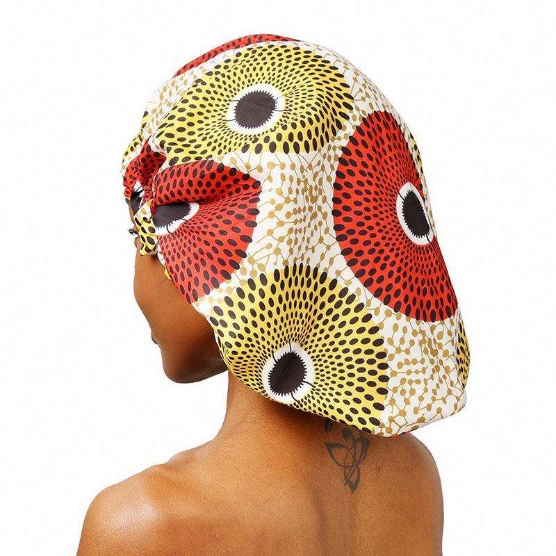 Bonnet de nuit double couche en satin de polyester imprimé africain grande taille réglable pour femme, idéal pour l'extérieur - Vente en gros