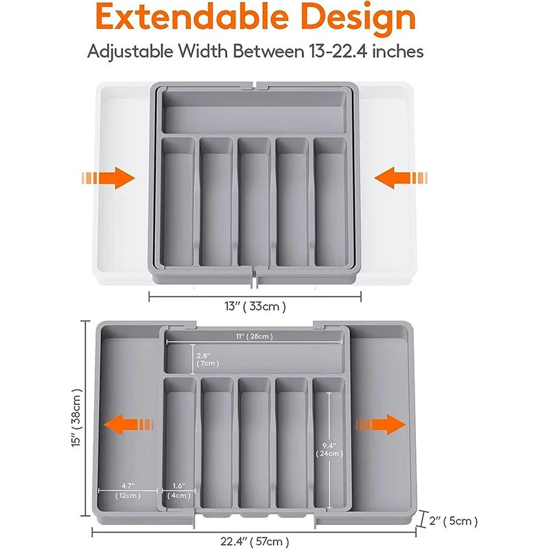 Organisateur de tiroir à couverts ajustable en gros avec séparateurs, plateau extensible pour cuillères et fourchettes