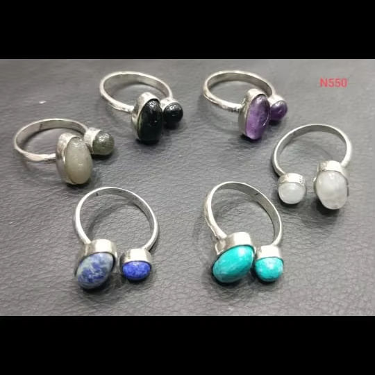 Bagues réglables en gros, style chrétien bohème, avec pierres précieuses et pierres rondes, bijoux en pierres de guérison