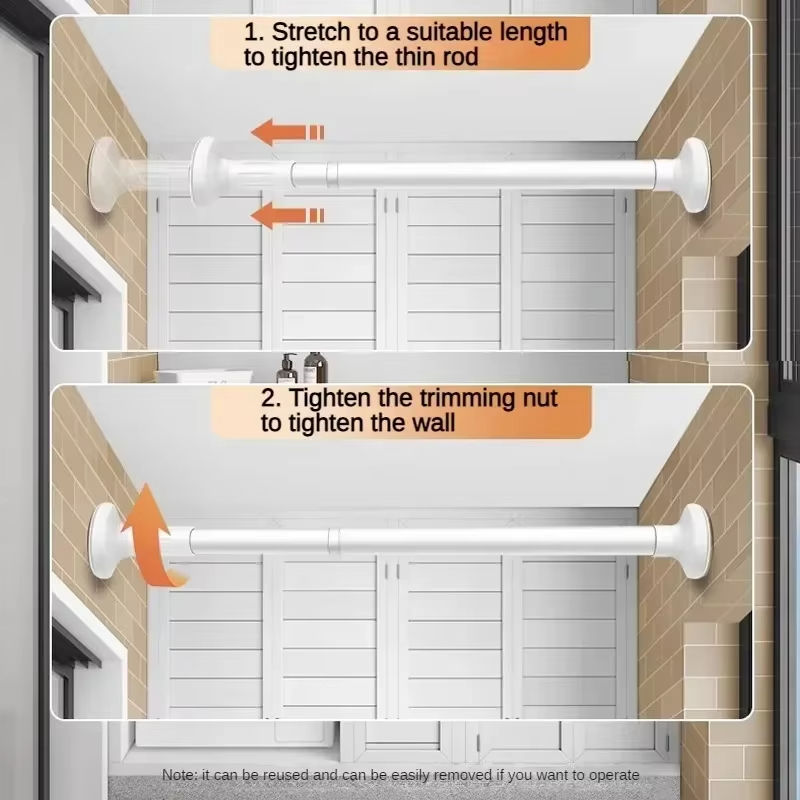 Barre de tension réglable en acier inoxydable, sans perçage, pour penderie.