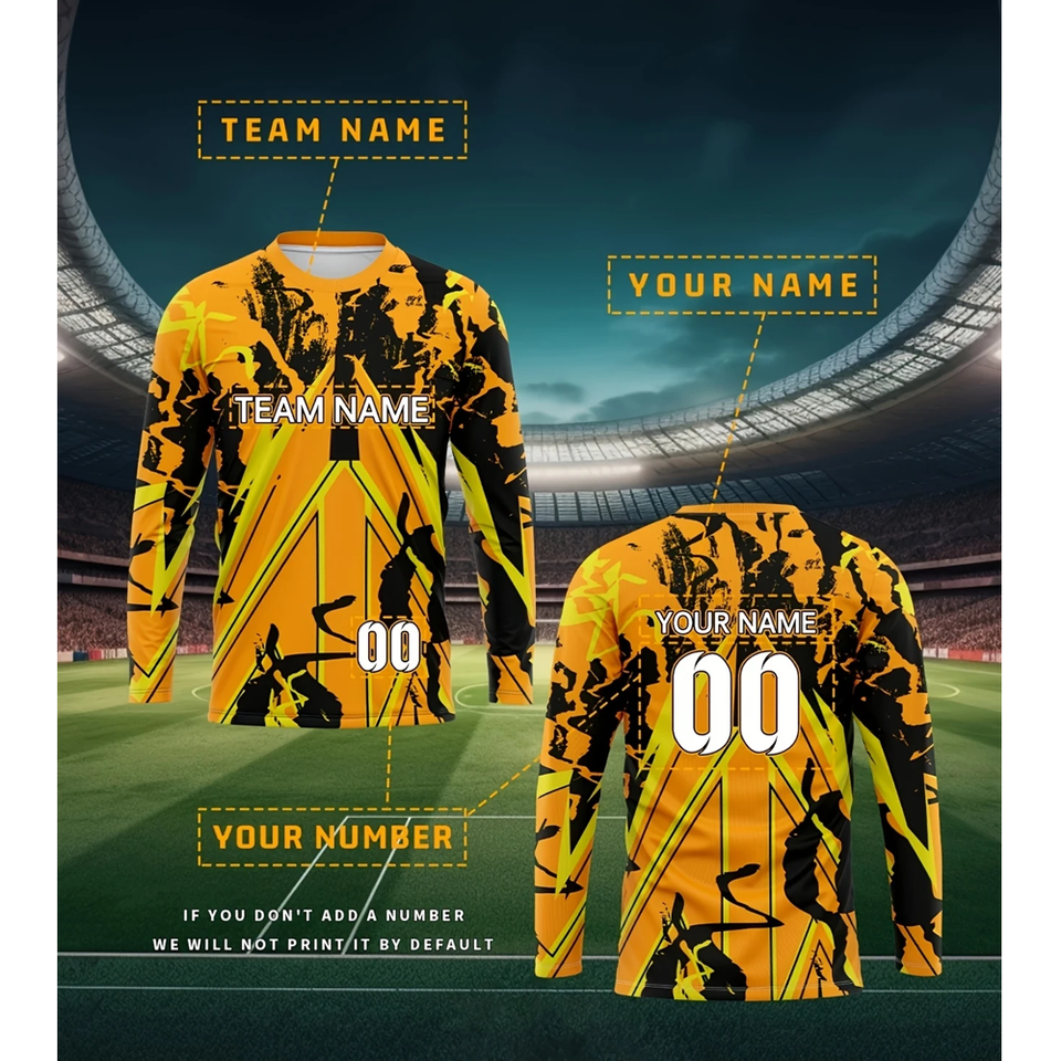 Wholesale Adult American Soccer Jersey - Black & Yellow, Long Sleeve, Round Neck, Polyester, Perfect for Team Sports, Training