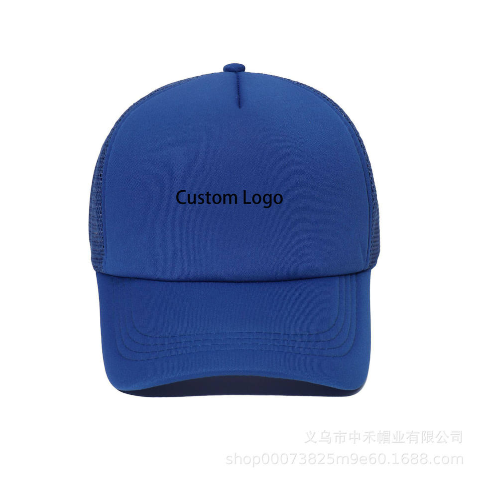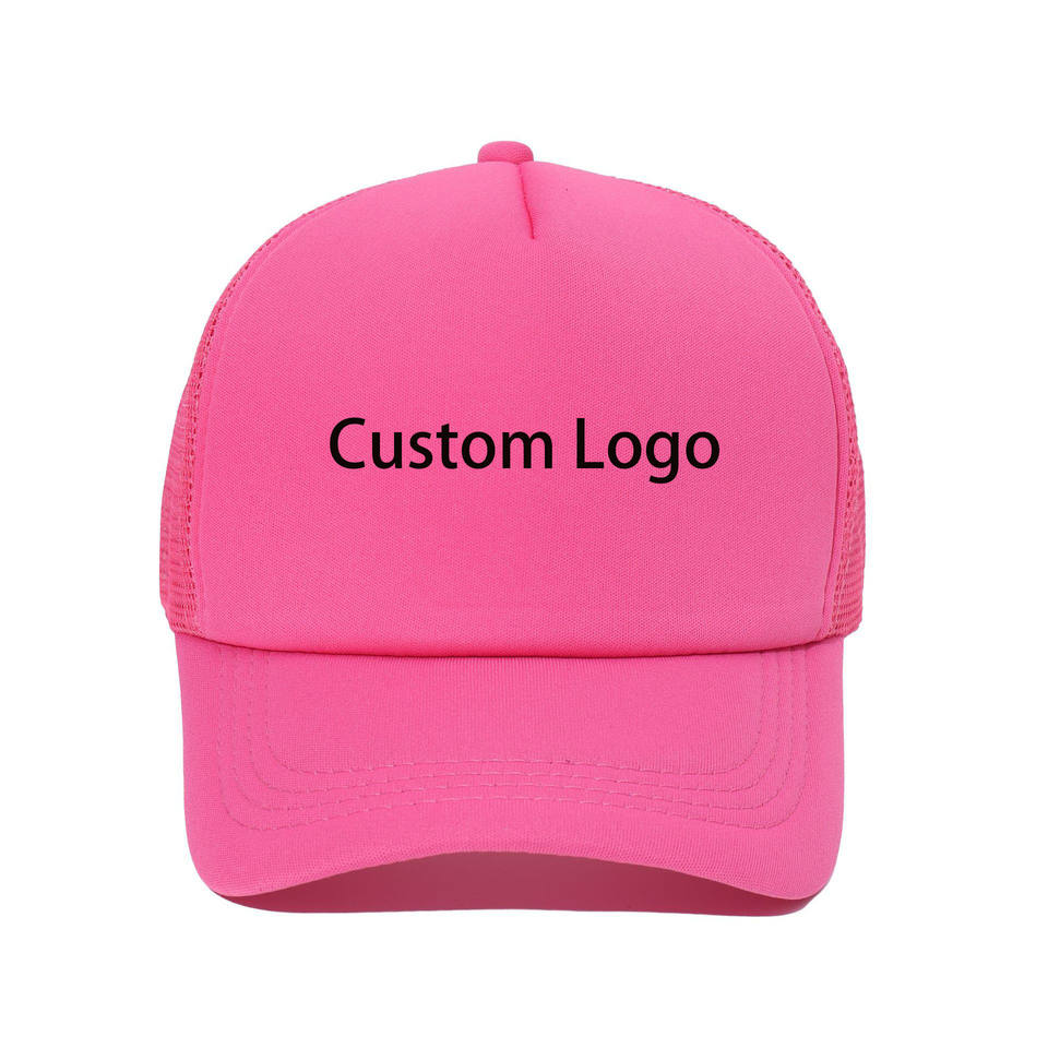 Vente en gros de casquettes de baseball à 5 panneaux pour le sport, publicité, visière d'été, casquette de baseball en maille, casquette en filet éponge, logo personnalisé