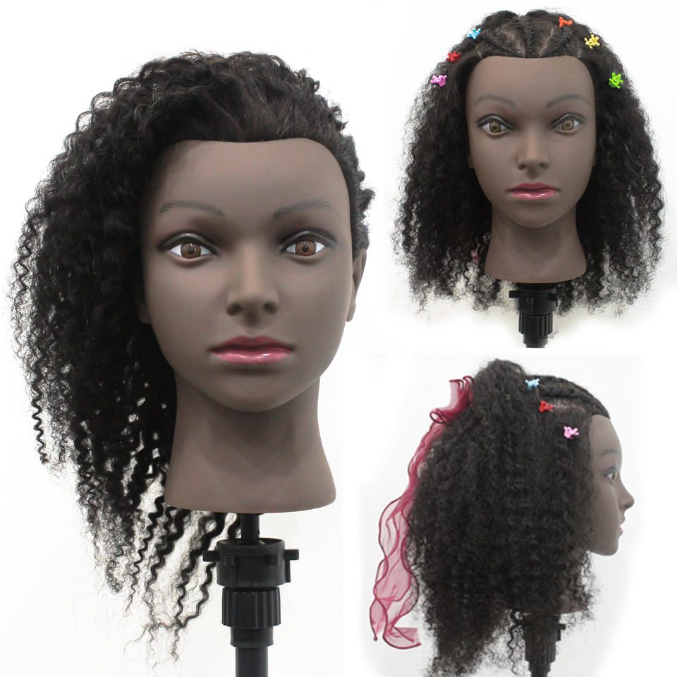 Wholesale African Barber Men Braiding Practice Hairdresser Training Doll Head,woman Curly Hair Styling Afro Male Mannequin Head