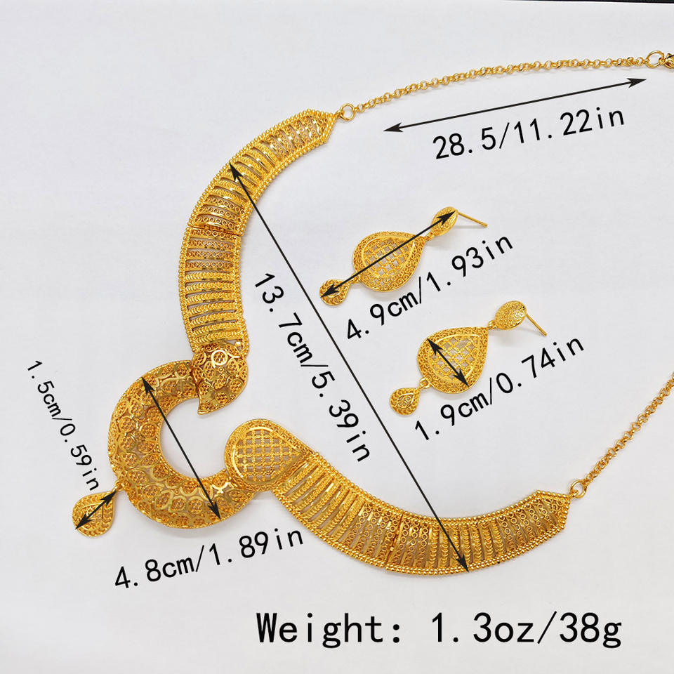 Wholesale African Saudi Women Luxury 24K Gold Plated Set Necklace and Earrings Brides Dubai Gold Jewelry Set