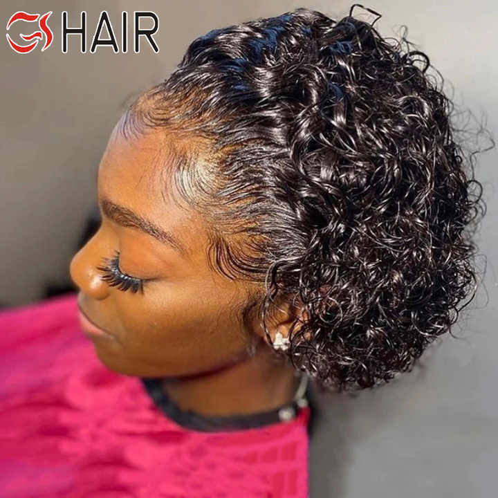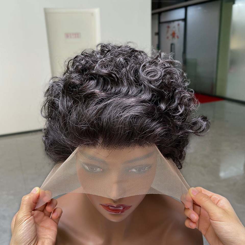 Perruques courtes frisées afro en dentelle coupe lutin pour femmes noires, 13x1 dentelle frontale T partie perruques de cheveux humains coupe lutin dentelle Vente en gros
