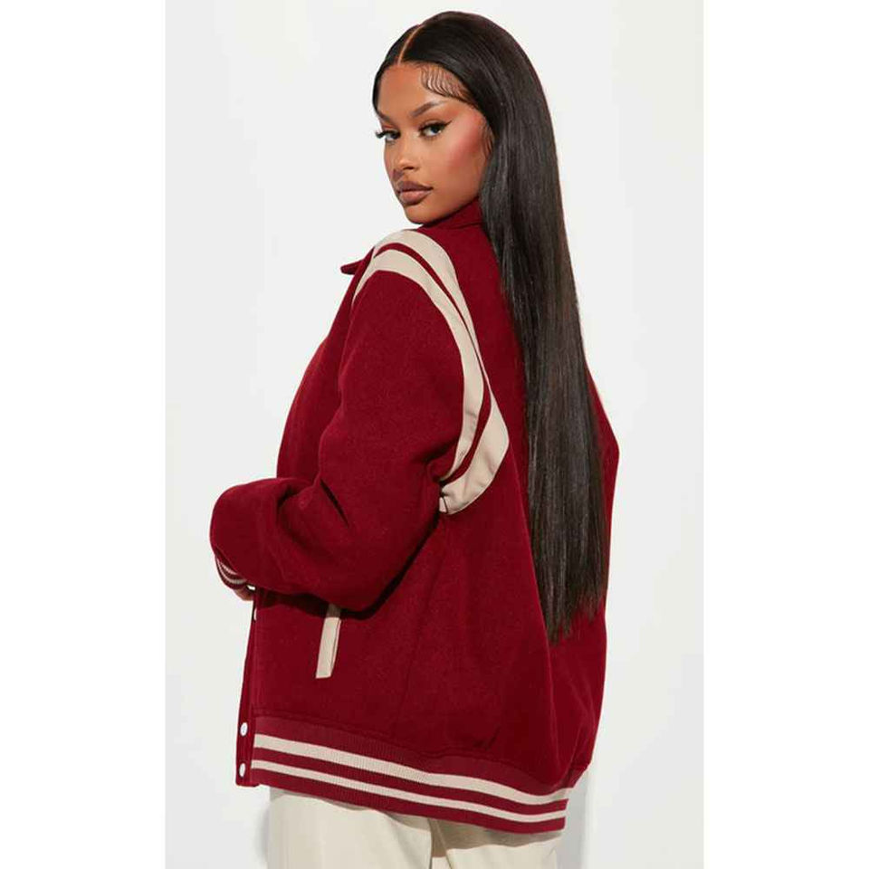 Veste universitaire entièrement en laine, logo personnalisé, style baseball lourd pour l'hiver, nouvelle mode, bouton en cuir et tissu, grande taille, vente en gros