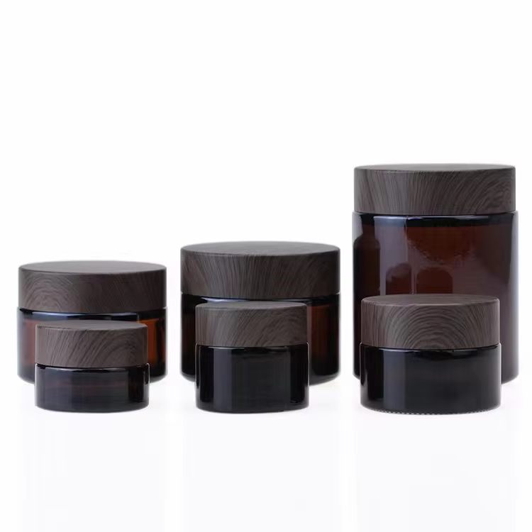 Wholesale Amber 5g 10g 20g 30g 50g 100g Empty Clear Frosted Face Body Cream Cosmetic Glass Cream Jar With Black Lid