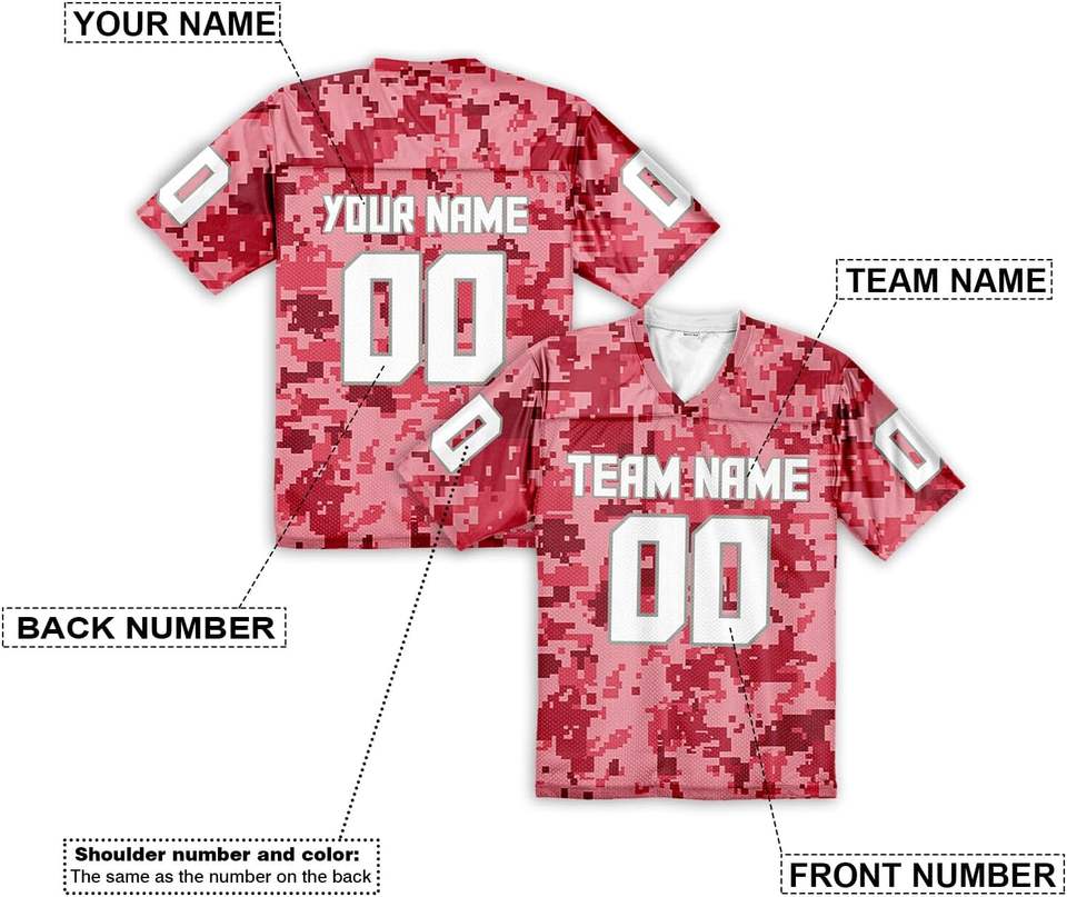 Vente en gros de maillots de football américain en maille polyester respirante Camouflage personnalisé impression par transfert de chaleur école d'entraînement grande taille