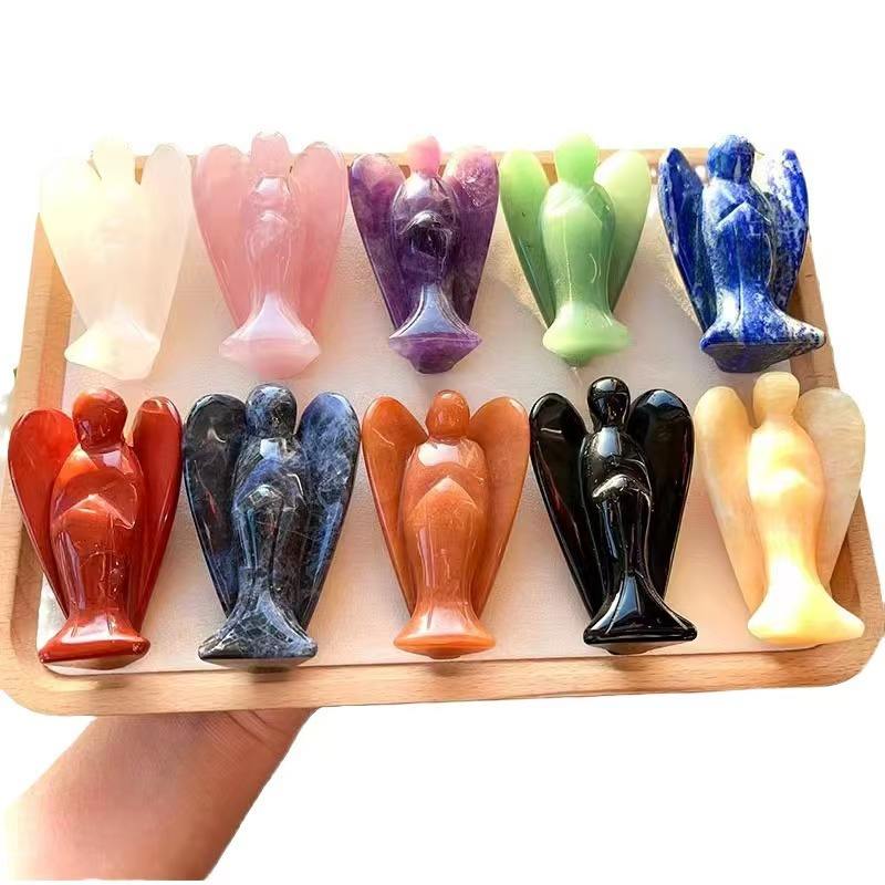 Vente en gros de figurines d'ange en cristal sculptées en pierre de quartz sculptée en améthyste naturelle