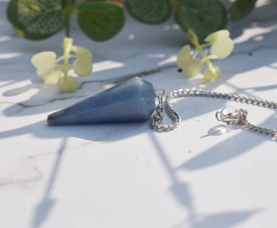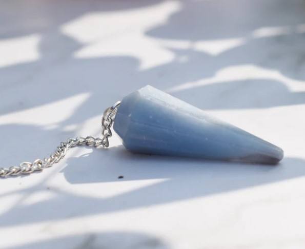 Vente en gros de pendule en cristal d'angélite, cône à facettes, pierre précieuse pour méditation, guérison métaphysique, pierre semi-précieuse naturelle artisanale