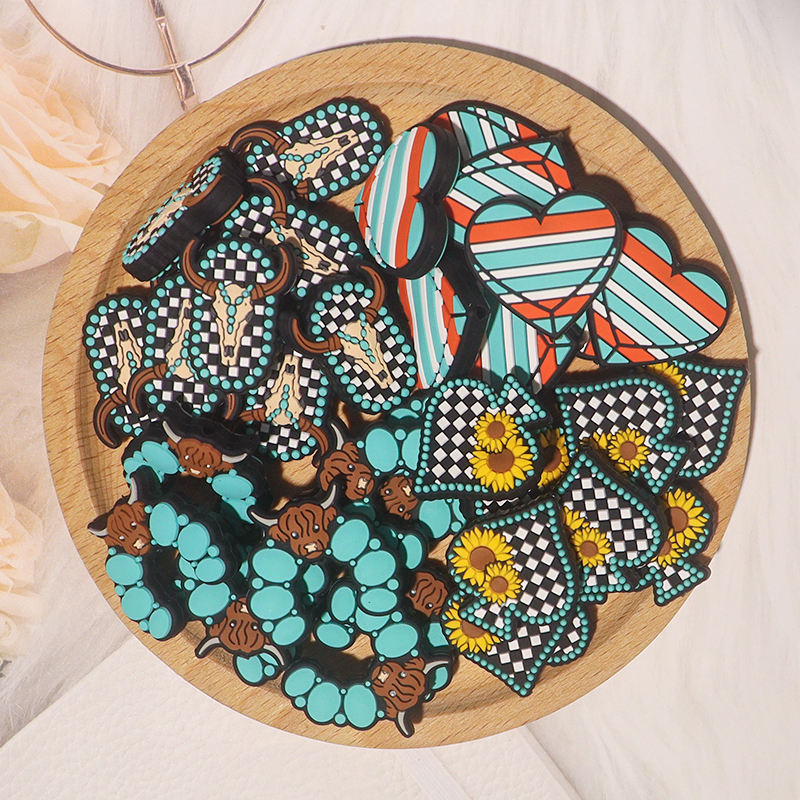 Vente en gros de perles focales de vache turquoise tête de taureau arche en silicone, perles en pvc pour la fabrication de bijoux bracelet jouets porte-clés