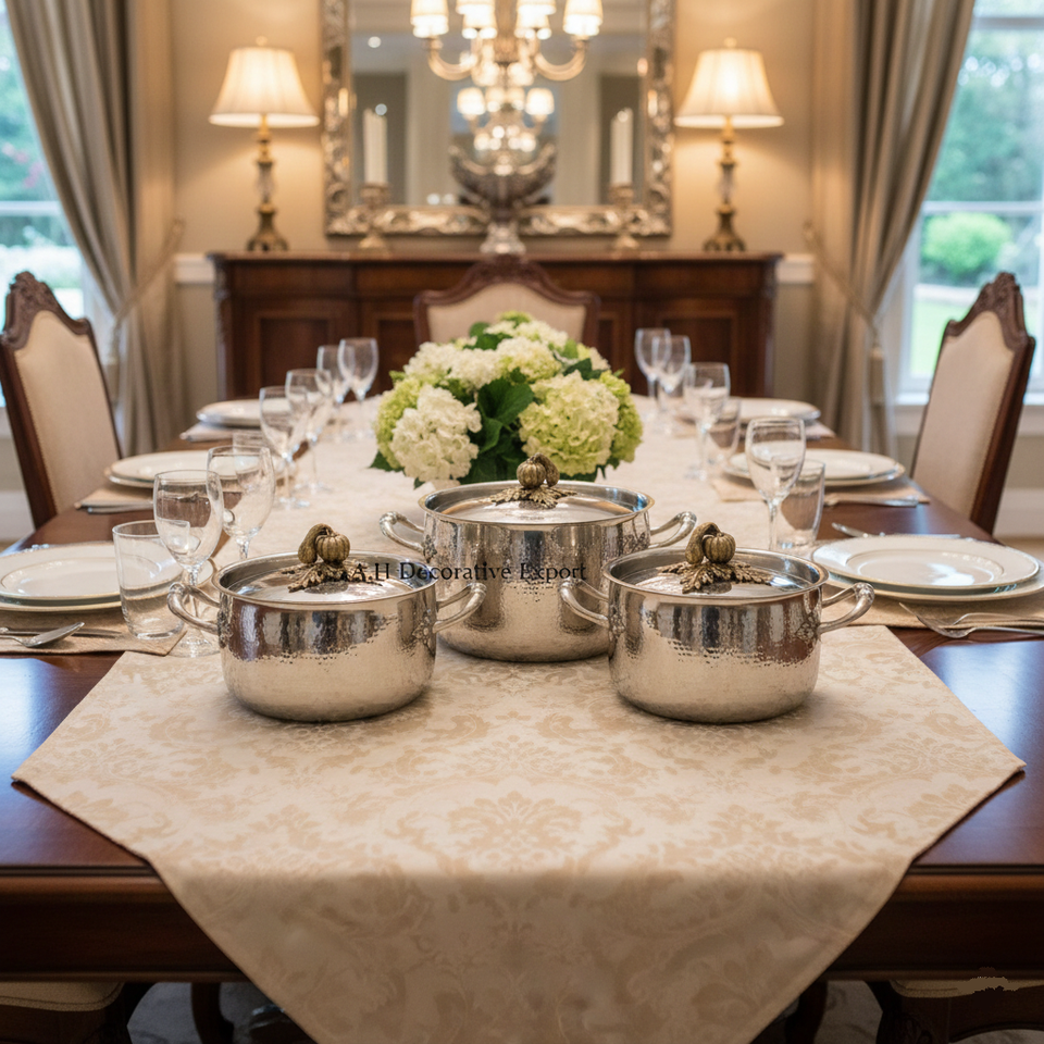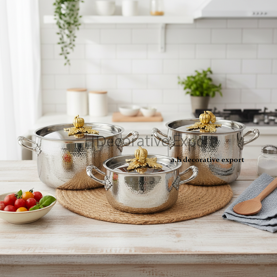 Wholesale Artisan Hammered Steel Cookware Europe Eco-Friendly Premium Silver Stockpots Saute Pan Pumpkin Lid Mirror Polished Set