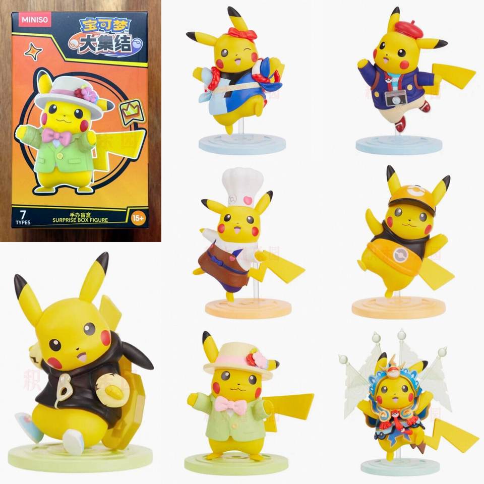 Vente en gros de figurines authentiques d'anime japonais, 6 pièces/boîte, PVC, échelle 1/6, pour la série de costumes Pokémon Pikachu, boîtes mystères, objets de collection Kawaii