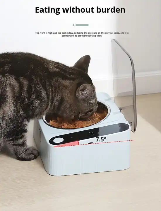 Gamelle automatique intelligente infrarouge étanche pour chat, surélevée et inclinée, rechargeable, amovible, en acier inoxydable, vente en gros