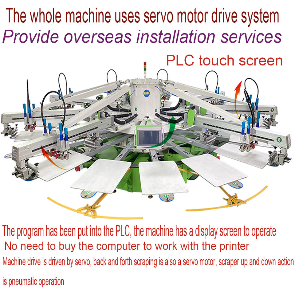 Machine d'impression sérigraphique automatique pour t-shirts, 8 couleurs, vente en gros