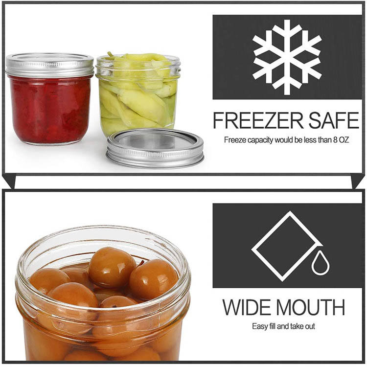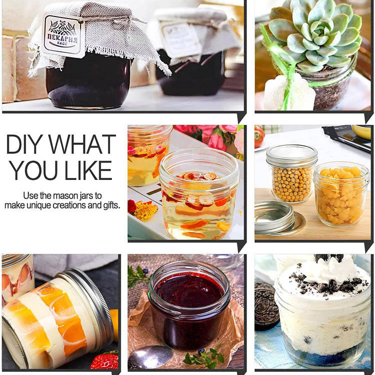 Vente en gros, sans BPA, étiquette privée personnalisée, 4oz, 8oz, 10oz, 12oz, 200ml, Mini verre de stockage des aliments, pot Mason de confiture de miel