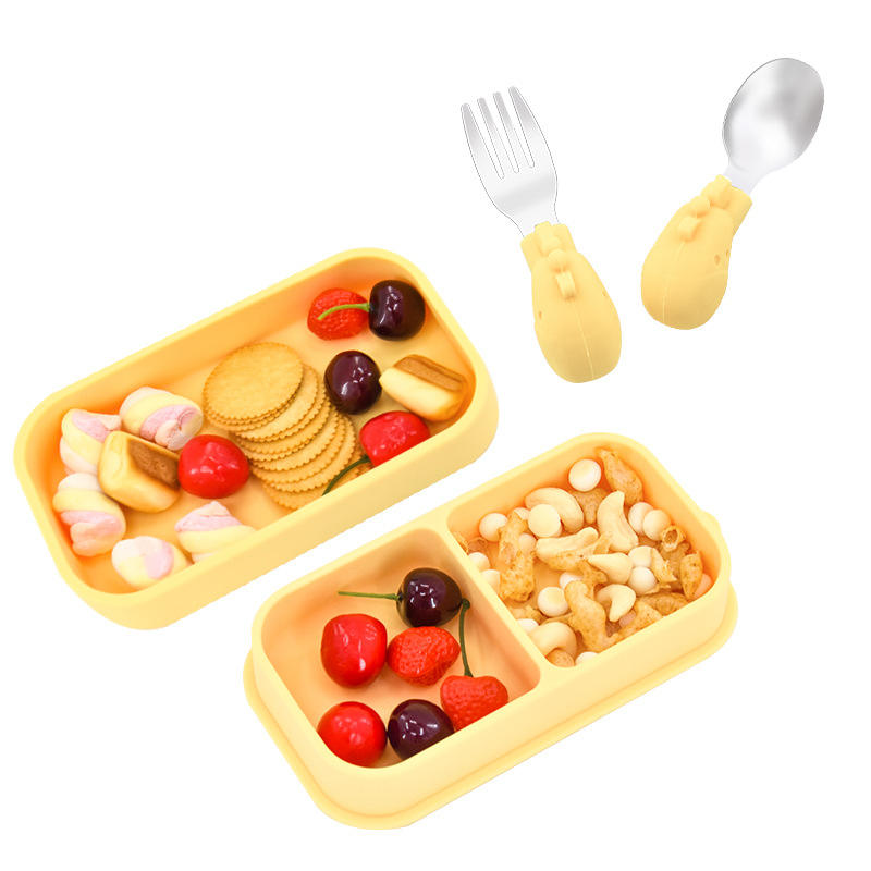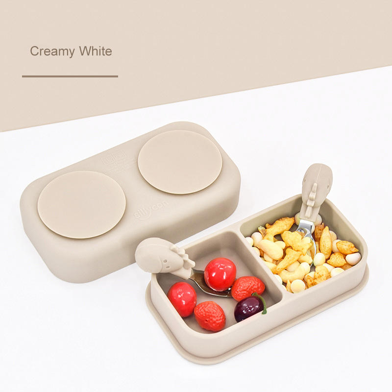 Wholesale BPA Free Silicone Leak Proof Foldable Food Storage with Suction Cups Lunch Box with Spoon and Fork Lunch Container