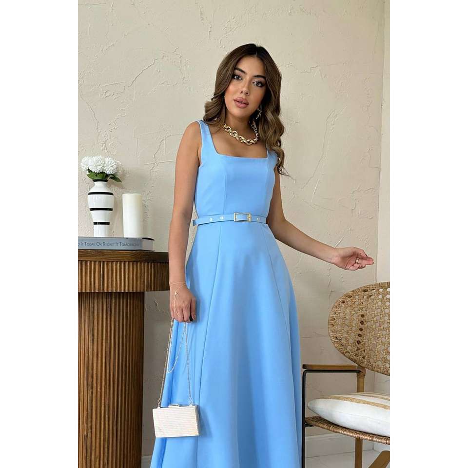 Wholesale Baby Blue Satin Evening Dress Long Ball Gown Belt Crocheted Empire Waistline Party Style XS Size Floor-Length Prom