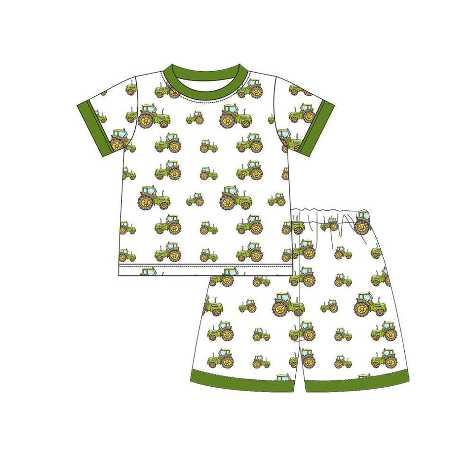 Wholesale Baby Boys Clothing Casual High Quality Embroidery Farm Animal Short Green Top Camouflage Shorts Outfit