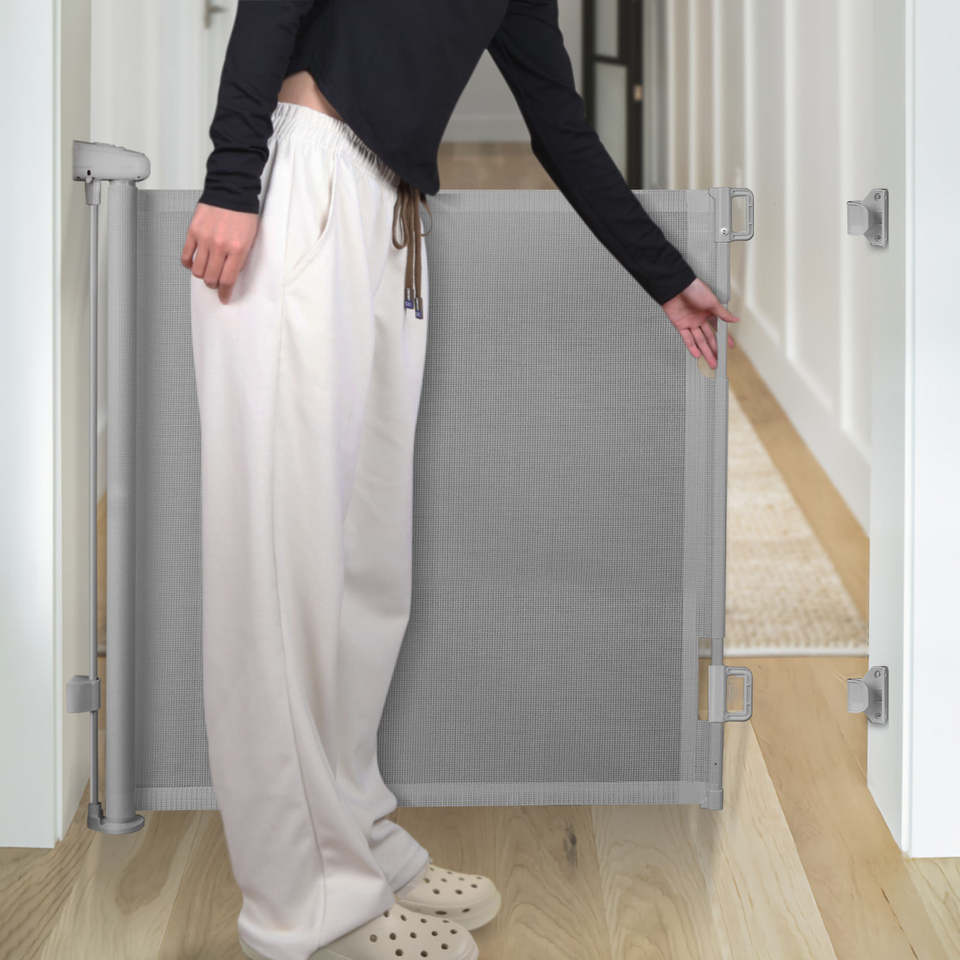 Barrières pour bébés en gros, faciles à utiliser, barrière d'escalier pour la sécurité à domicile, clôture de sécurité rétractable pour bébés.