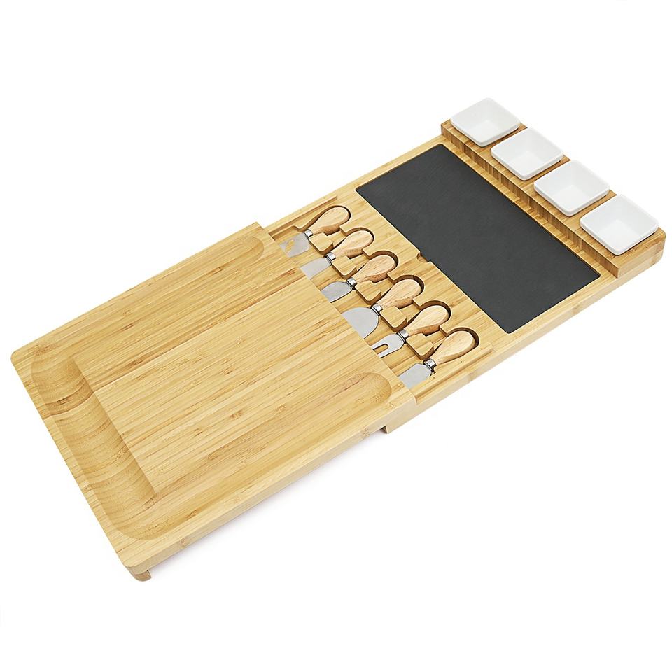 Description:Conseil en bambou avec l'ensemble de couteau, ardoise etc.,