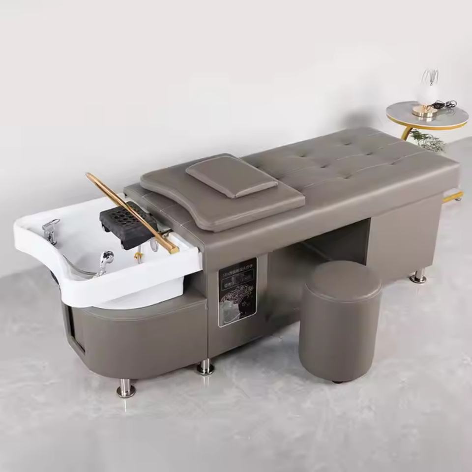 Chaise de lavage de cheveux de salon de coiffure professionnelle, entièrement inclinable, pour traitement capillaire thaïlandais, blanche, avec circulation d'eau