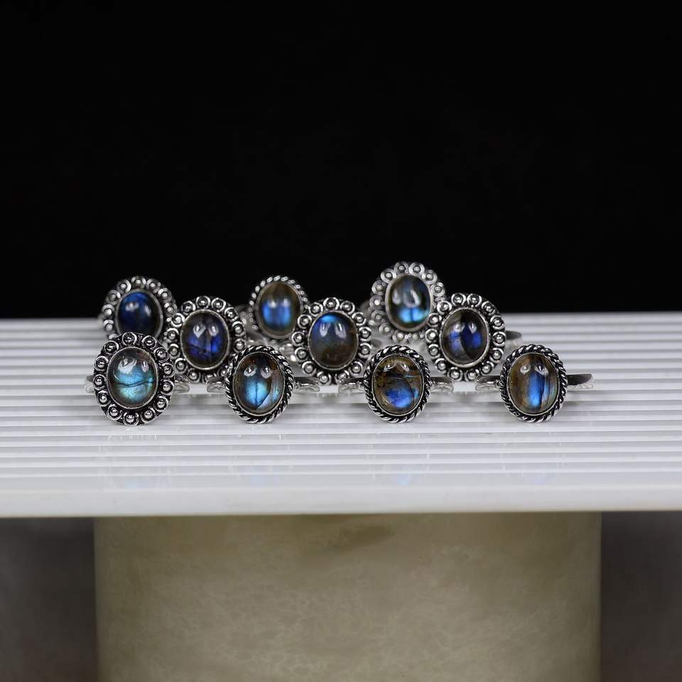 Vente en gros de bagues à pince de belle conception Bijoux en pierres précieuses Labradorite bleue naturelle Matériau principal en laiton pour la vente au détail