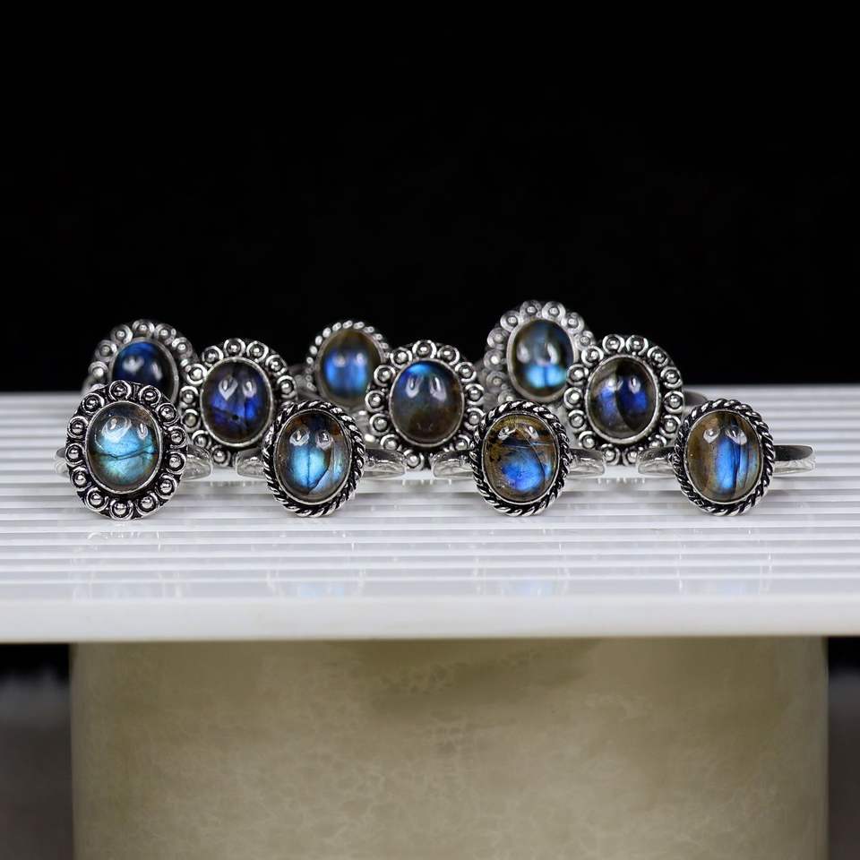 Nom du produit:Bague plaqué argent labradorite bleue