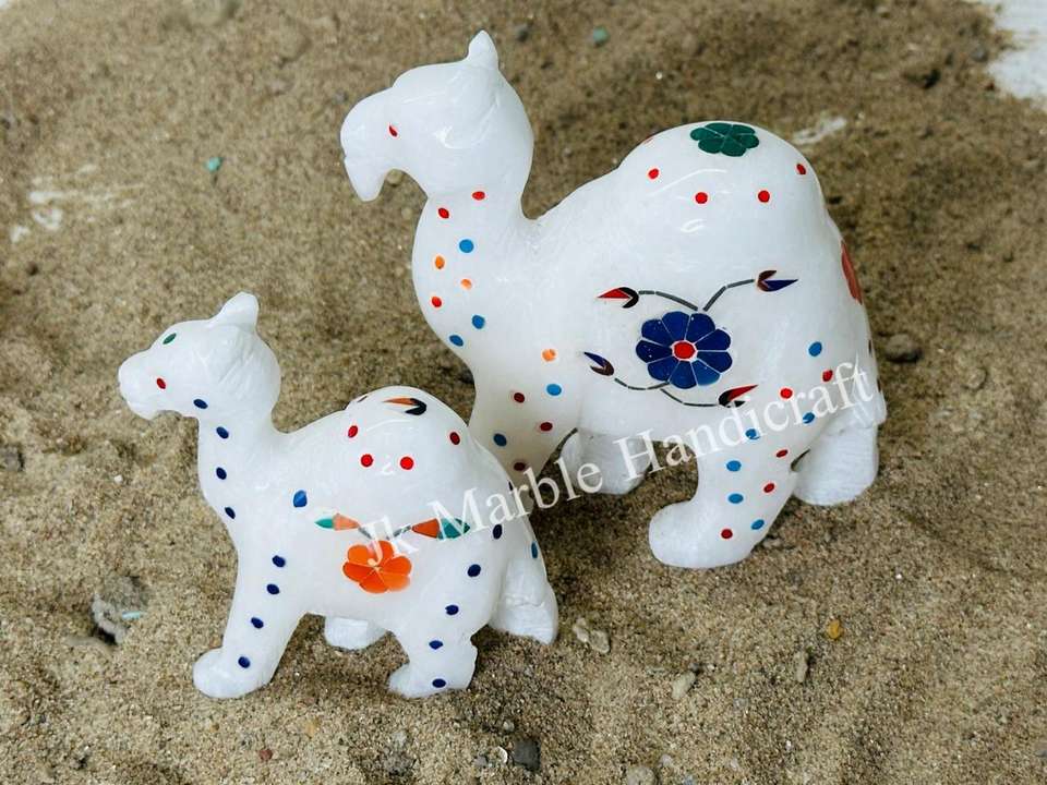 Vente en gros belle figurine de chameau incrustée de marbre blanc, artisanat en pierre artisanal pour la décoration de la maison et du bureau au meilleur prix