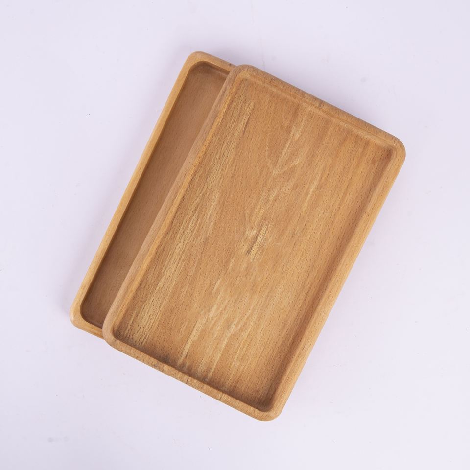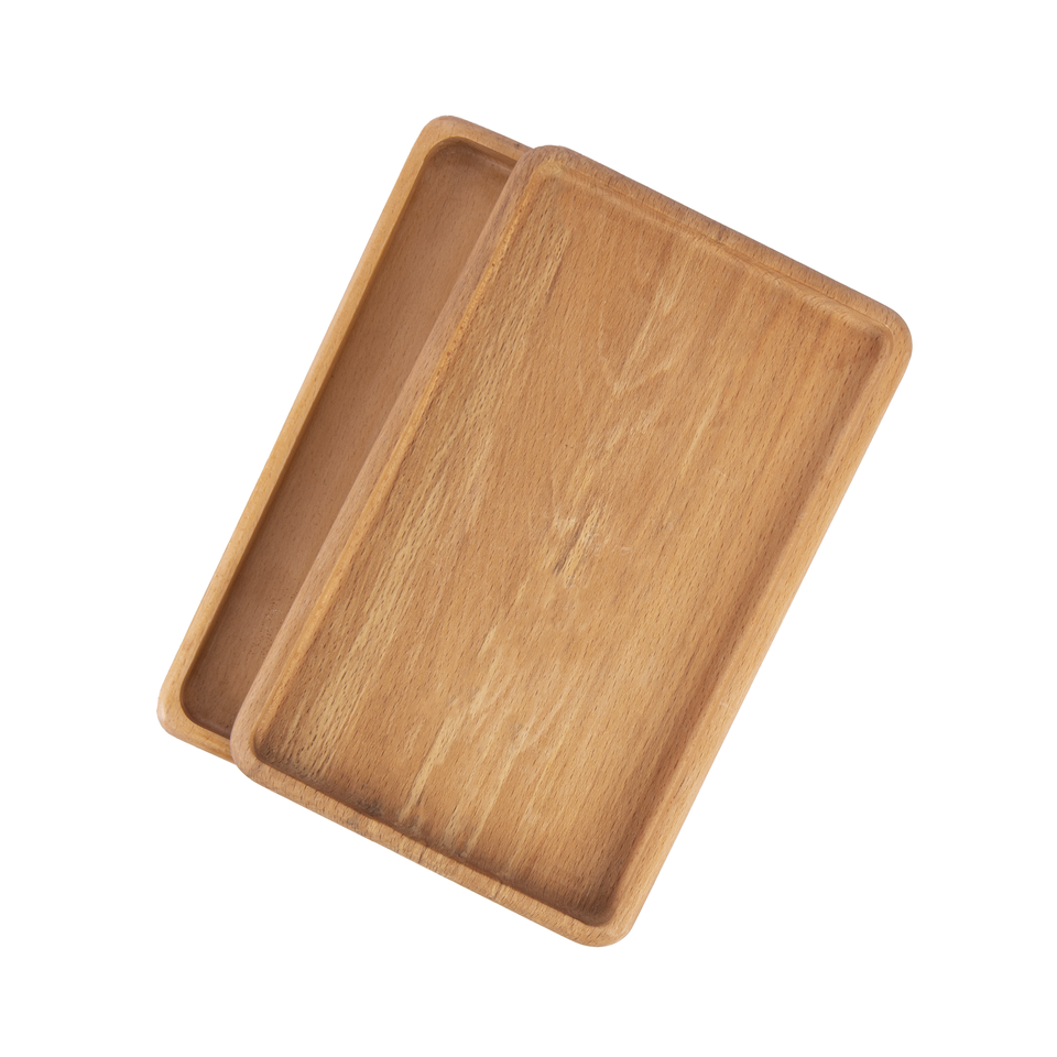 Ensemble de plateaux de service rectangulaires en bois de hêtre (2 pièces) | 30 × 19 cm