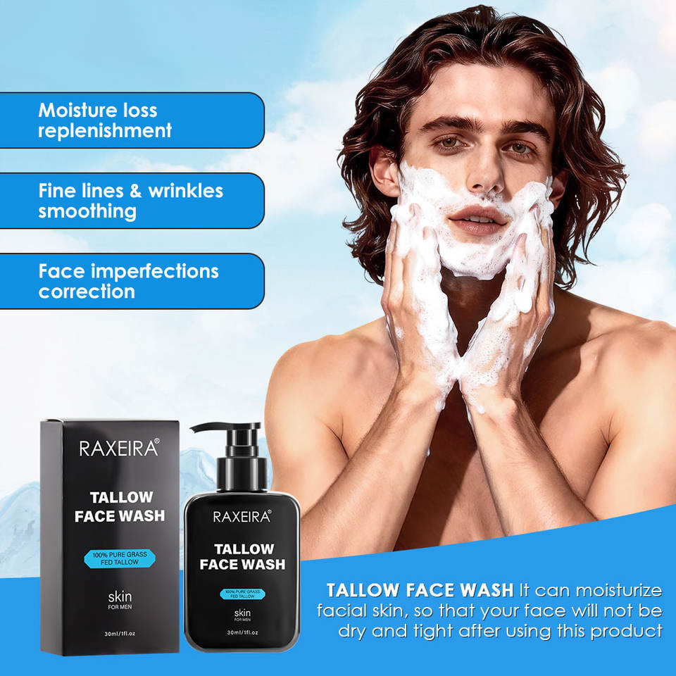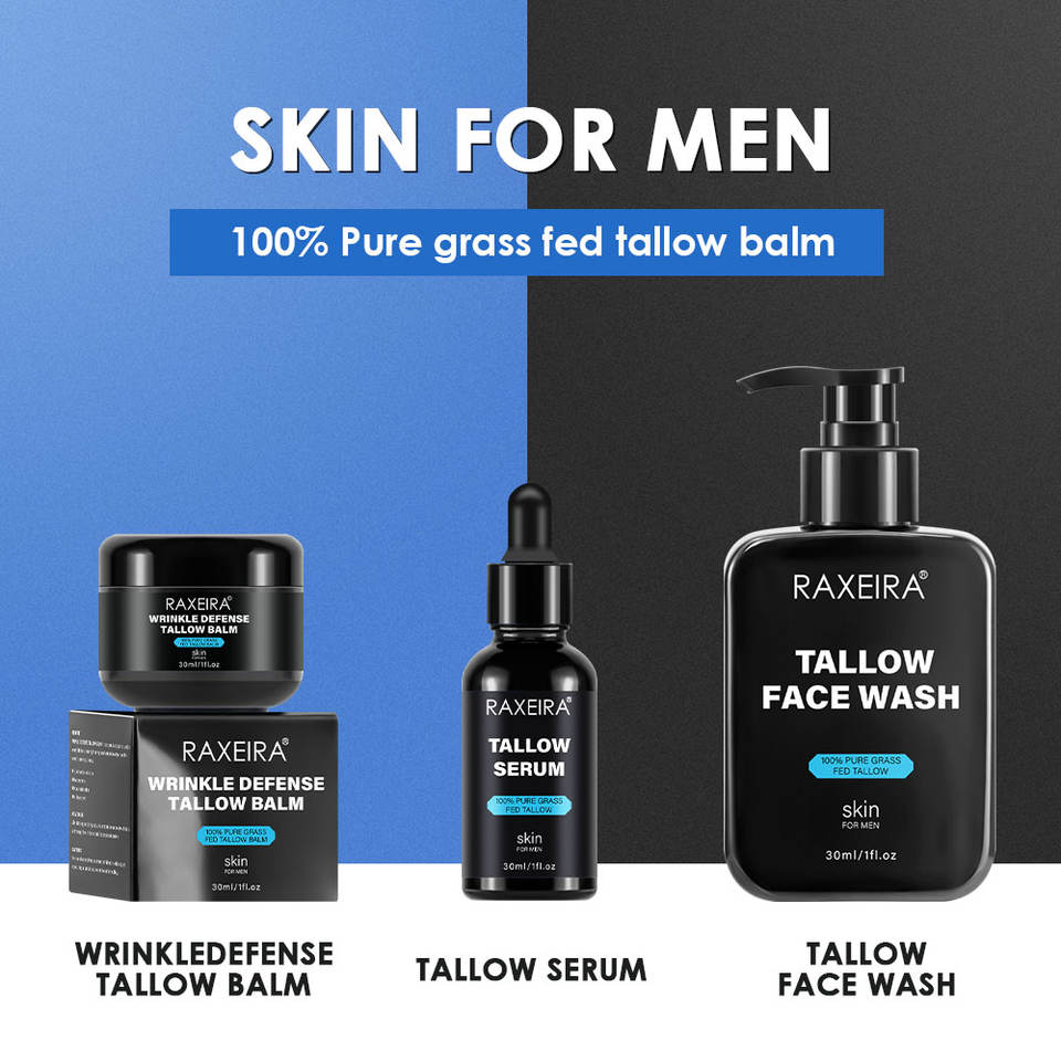 Kit de soins de la peau au suif de bœuf en gros pour hommes, anti-acné, contrôle de l'huile, nettoyant visage, crème pour le visage, sérum hydratant, ensemble de soins de la peau pour hommes