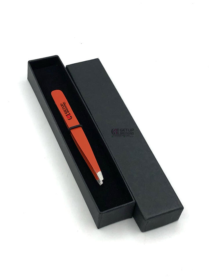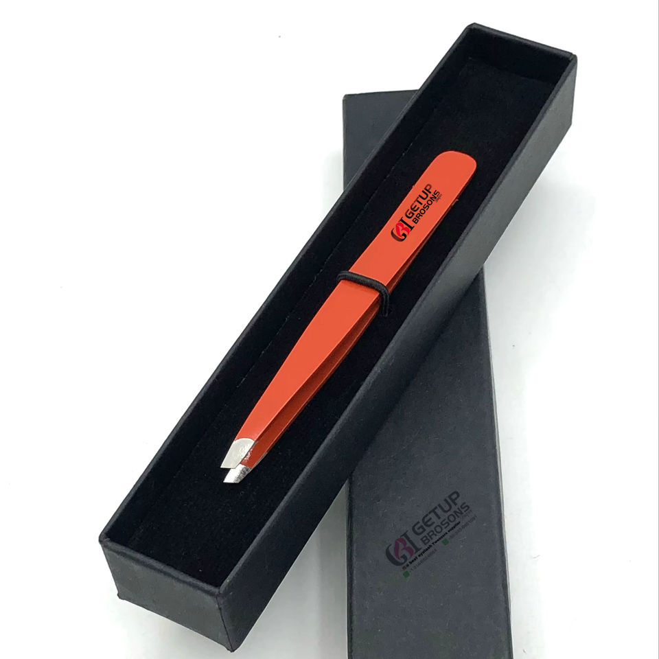 Pince à épiler en acier inoxydable de revêtement en poudre orange foncé de meilleur design avec votre propre outil de beauté de logo personnalisé vente en gros